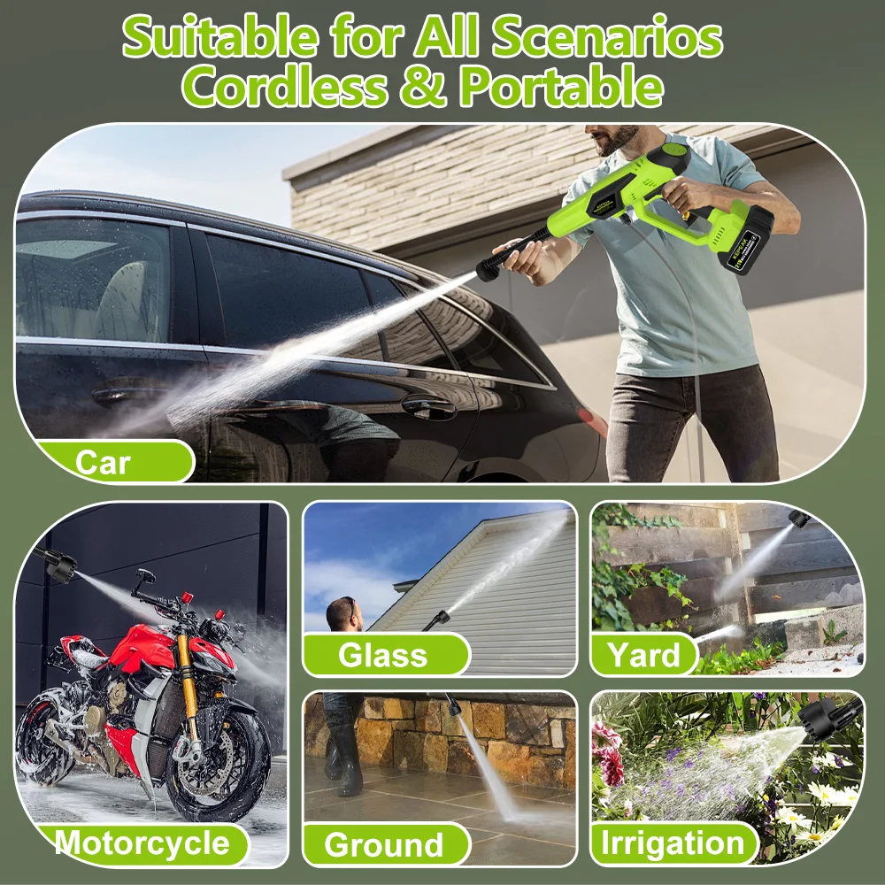 200W Cordless High Pressure Car Washer Spray Water Gun Home Car Washing Machine with 10-Section Single Battery Carrying Case